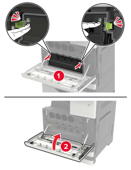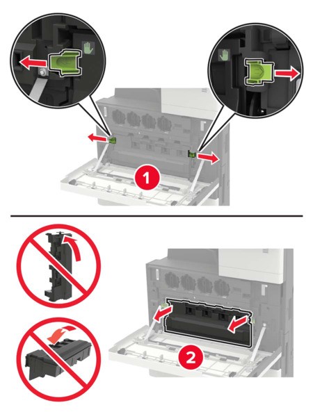 Plaats de reiniger terug.Plaats de toneroverloopfles en sluit de klep.
