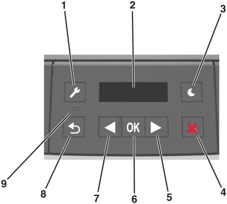 2 | 显示 | 查看打印选项以及状态和错误消息。 |