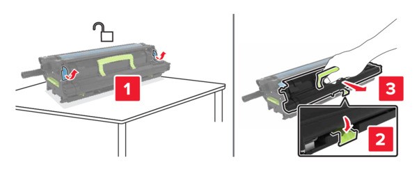 拆开新显影部件的包装,然后移除包装材料。