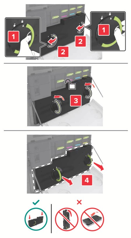 移除废碳粉瓶。