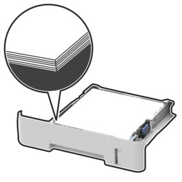 - 不要加载过多纸张。确保纸堆高度低于最大纸张加载指示线。