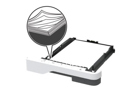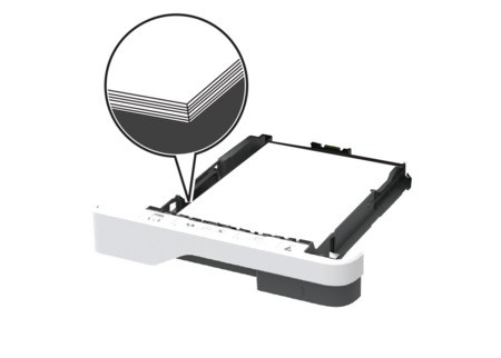 - 不要加载过多纸张。确保纸堆高度低于最大纸张加载指示线。