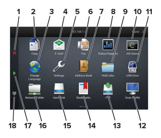 了解如何使用打印机主屏幕上的图标来发送文件、管理文档,以及完成更多任务。